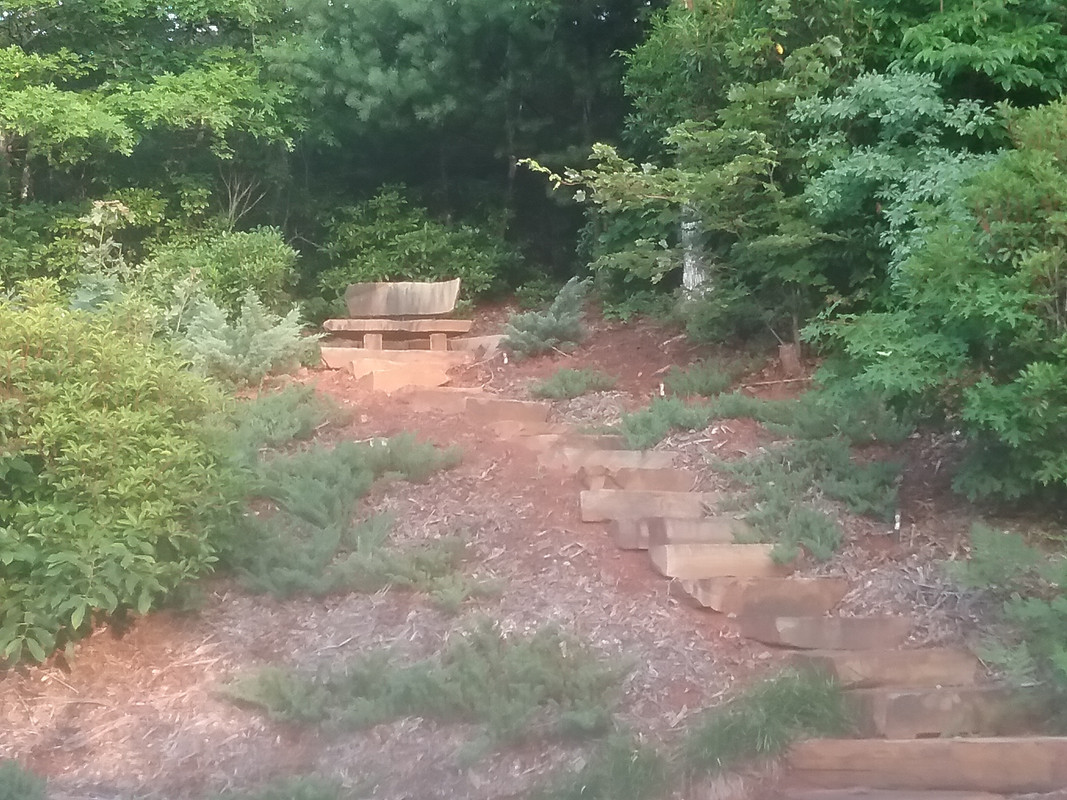 Bench is Set at the edge of the Backyard , just nestled in the woods !