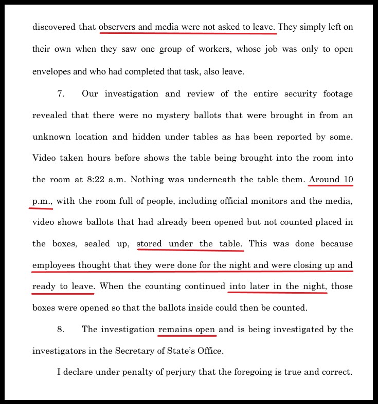In a short, albeit obtuse, affidavit filed today in advance of election litigation, Chief Investigator Frances Watson simultaneously highlights the evidence seems to support the claims of fraud and manipulation, but also says it doesn’t.  [pdf link]