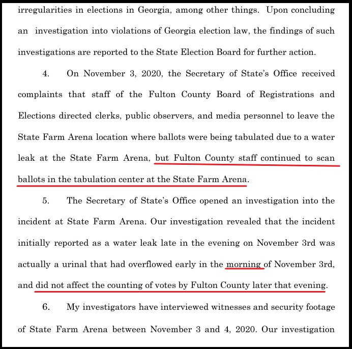 The widely reported “water main” break excuse was actually nothing to do with the widely reported late-evening request to exit the arena.  In essence this part of the affidavit validates the water main lie was false.  It was a lie told to media by someone for some unknown purpose.  But this affidavit gets even more sketchy…