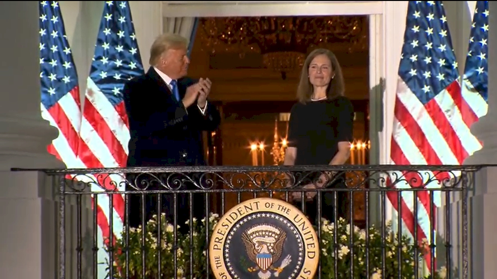 On this October evening — and it is so beautiful — the First Lady and I welcome you to the White House to bear witness to history. In a few moments, we will proudly swear in the newest member of the United States Supreme Court: Justice Amy Coney Barrett. (Applause.)