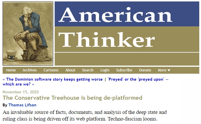 All of the current social media attacks, and now “deplatforming” The Last Refuge. We must protect our First Amendment freedom of association. Thank you Sundance for all your work and dedication to The Conservative Treehouse.