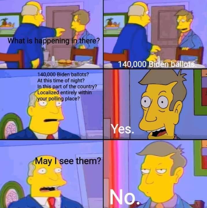 If the FBI and DOJ were doing their job they would subpoena the cctv photage from around all the major counting centers to observe a 3-4AM ballot dump. That video may have already been destroyed by this time, but the record would show the tapes were missing, destroyed, or tampered with. The Trump Campaign can’t subpoena evidence.