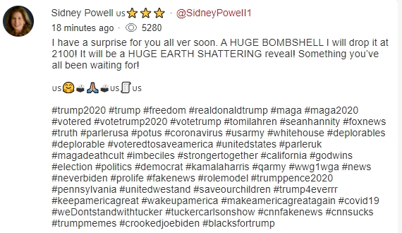 Parler post, Sidney Powell.