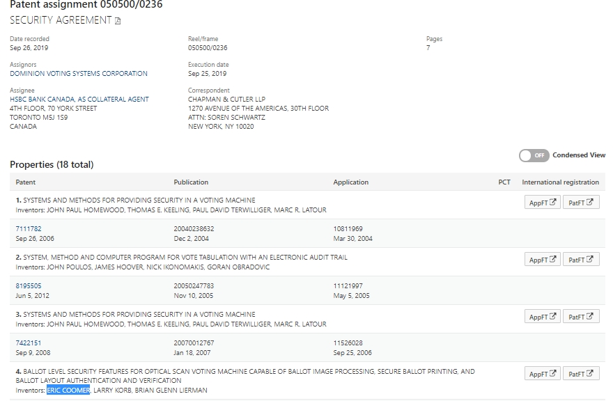 Mr Coomer is the inventor of several Dominion security system parents now signed over as collateral to the The Hongkong and Shanghai Banking Corporation (HSBC). Coomer plays a central role in the Dominion organization.