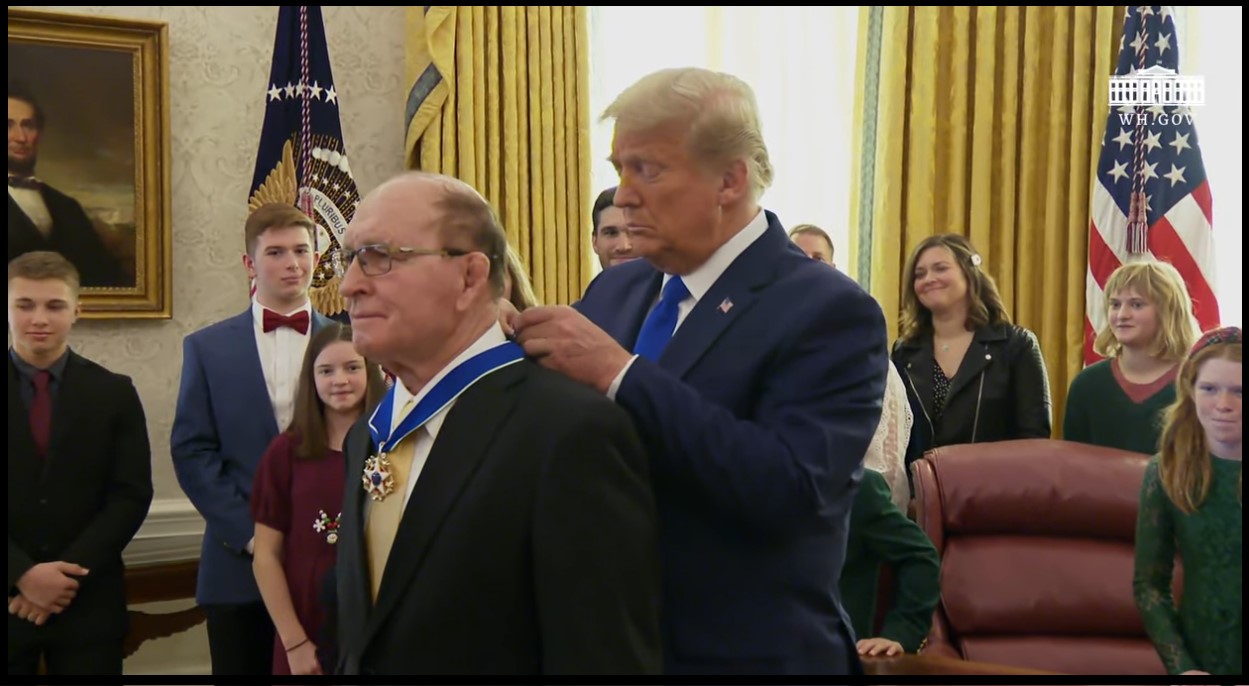 This afternoon President Trump presented the Medal of Freedom to Dan Gable, a collegiate wrestling champion & Olympic gold medalist. [Video and Transcript Below]