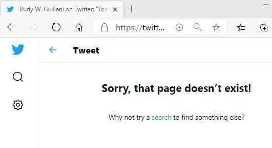 The following tweet by Rudy W. Giuliani has been censored…so I cannot post a link.
