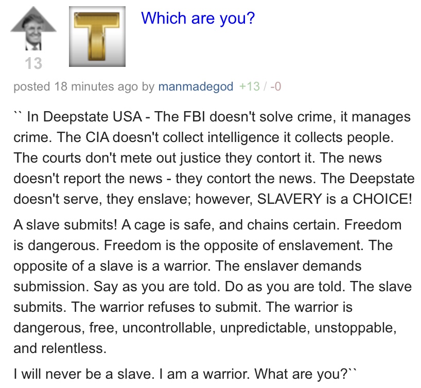 I agree. I also look at it this way in regard to the two plus years of Tweeting “We Caught Them All”: If he does nothing in terms of using the entirety of the Powers of the Presidency in order to bring to fruition what he has been Tweeting Ad nauseum, he will have committed a kind of fraud of misrepresentation in the process. In my view, when one makes such damning statements like that, one had better be able to Ironclad deliver on them, period. Actually, to do otherwise would mean that he would be no different than people like McConnell, Romney, McCain, Graham, Flake, Bush and on and on. I hope that President Trump can make good on his “Talk”…However, in my Political lifetime as a Republican, when you have to actually rely on People and their “Talk”, you will often be disappointed.