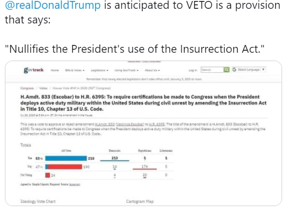 REPORT: Amendment Added To The #COVID19 Stimulus (Omnibus Spending) Bill “Nullifies the President’s use of the Insurrection Act.” This Was Done To Remove Power From @realDonaldTrump In The Event There Are Election-Related Riots.