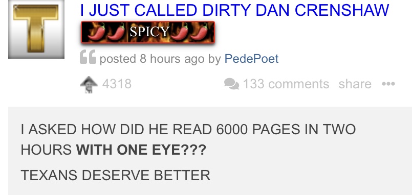 About time people learn that Crenshaw is a RINO. Guess it would take research……