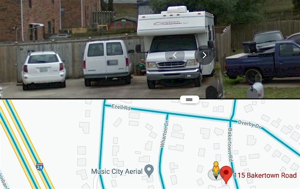 The drivers side vent is white in the google images of the property and black in the video from Nashville. The two RVs are not the same. But why wouldnt the same RV be used? Have the neighbors been asked when the RV was last seen at the house? There has to be evidence of the license plate or VIN somewhere in the debris. If it is the same vehicle in both pics the FBI would come out with info like VIN or license.