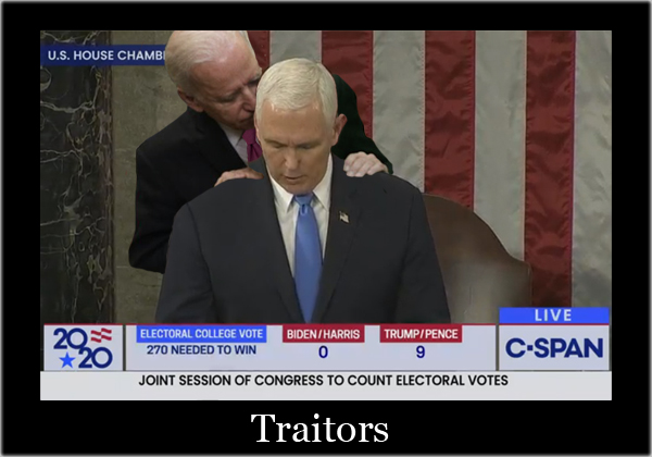 Mike Pence didn’t have the courage to do what should have been done to protect our Country and our Constitution, giving States a chance to certify a corrected set of facts, not the fraudulent or inaccurate ones which they were asked to previously certify. USA demands the truth!