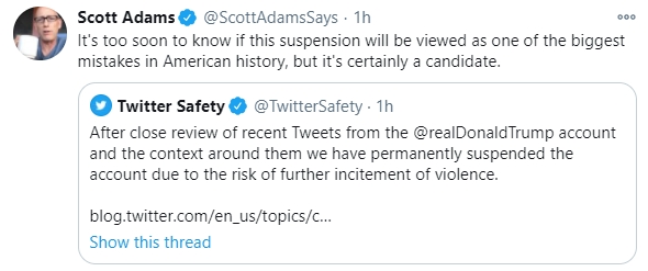 Anybody know when they cancelled “President Trump’s” Twitter account?