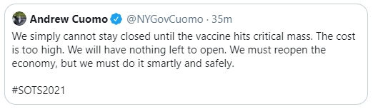 Cuomo now turns 180 degrees exactly as predicted. The destruction of the American ecomony was part of the plan to derail Trump’s reelection.