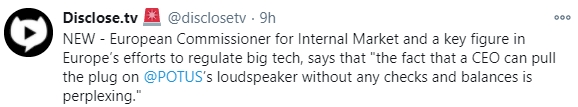 The European Union has been happy to ignore the total stranglehold the left has over the mainstream media and Big Tech in the US until the sudden realisation it has arrived on their doorstep too.