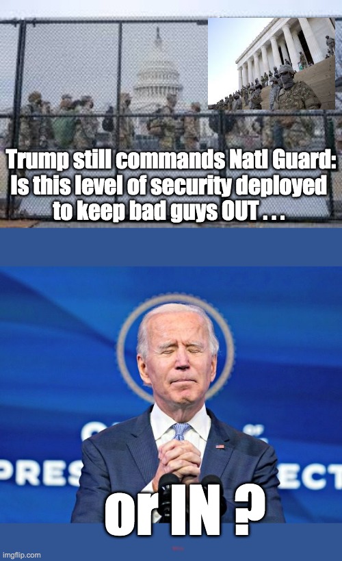 My opinion only, but how are Antifa and BLM suppose to burn it all down with all those armed military present? Poor Joe, his back up army can’t burn loot and riot now can they Piglosi?