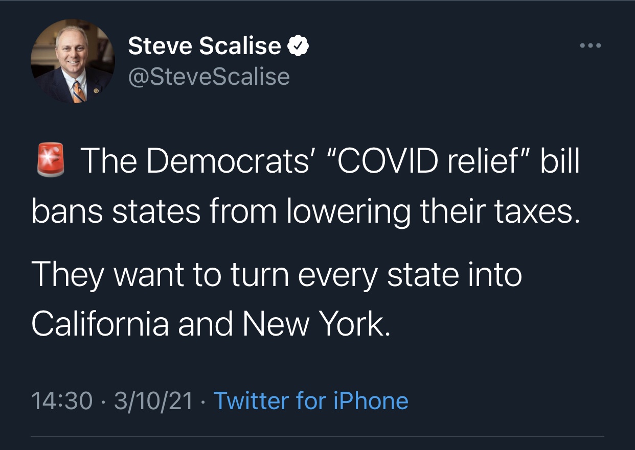 States are broke. No one is going to lower taxes. Taxes are only going up. So why would this even be in the bill? Something’s up. And, no, I also don’t think it’s legal…but that doesn’t stop the dems.