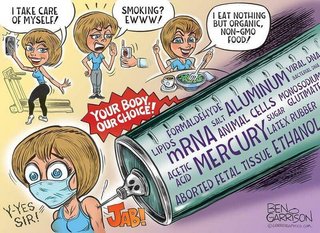 I began taking vitamins A, C, D and Zinc which were all recommended by several MDs re Covid. I exercise regularly, try to eat healthy and have given zero thought to wearing a mask or being vaccinated. Plus, there are effective treatments for the virus. No way…too many sinister forces at work.