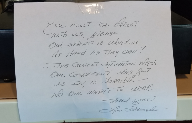 Sign on the cash register at the local pizza parlor –