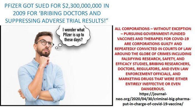 Big-Pharma – guilty of lying, cheating, stealing, bribery, and a history of exposing the public to dangerous and even deadly drugs – is being given billions to develop a Covid-19 “vaccine.” Would you trust your health to these criminals?
