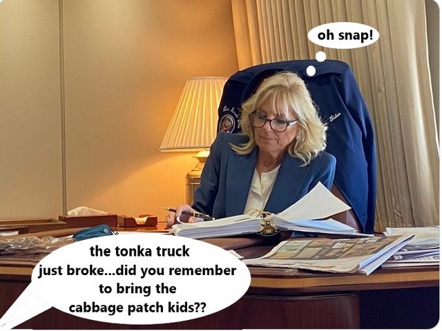 Well, she is no more the “Mrs. Biden” she hated to be known as. “Dr” or “FLOTUS” either is not good enough it seems – who else but she posted this photo – chair of “POTUS”