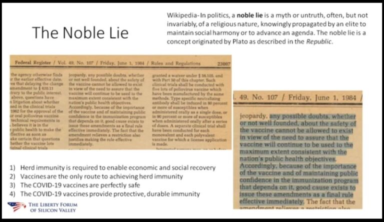 Dr. Robert Malone is the scientist who created mRNA vaccine technology. Dr. Malone is a world leading expert in virology and pandemics. Additionally, Dr. Malone is not in favor of the untested COVID vaccines and notes the conflicts of interest within the medical establishment, people and institutions that are mandating vaccination as a mitigation effort … Continue reading Dr. Robert Malone Explains mRNA Vaccines and The Noble Lie Used by The Medical Establishment to Manipulate Vaccine Propaganda