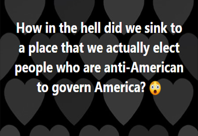 How many citizens don’t realize we have had an enemy foothold and clearly a coup that has taken charge of our country? The real terrorist are Them.
