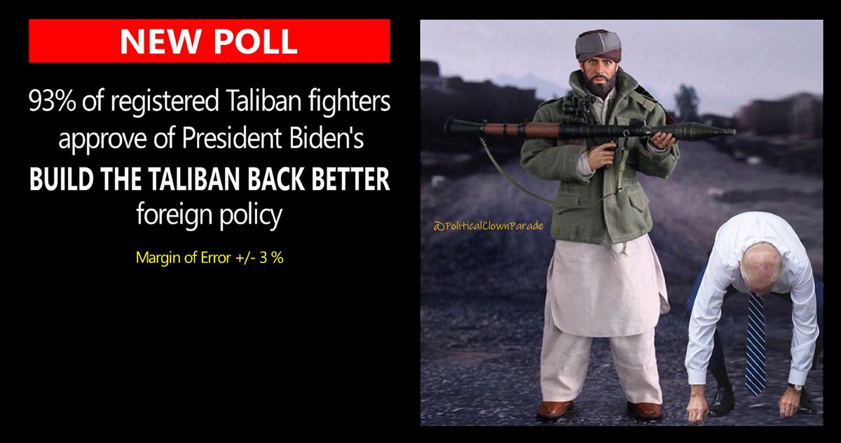 The Taliban is colluding with Joebama. That is why the Taliban is still on twitter while reporters and videos exposing truth and Bidens mental problems have been banned or removed.