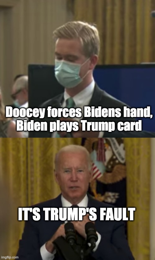 In the last couple of minutes he blamed Trump again, said if he (Biden) had held to the May 1 deadline, things would be worse.