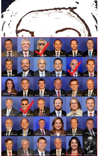 Every one of them needs to be ousted. That includes McCarthy, who isn’t on the list. And then for the Senate. Pierre Delecto needs to go, McTurtle the traitor also. Sasse, Commie Collins, the Feinstein slave from Alaska, among others.
