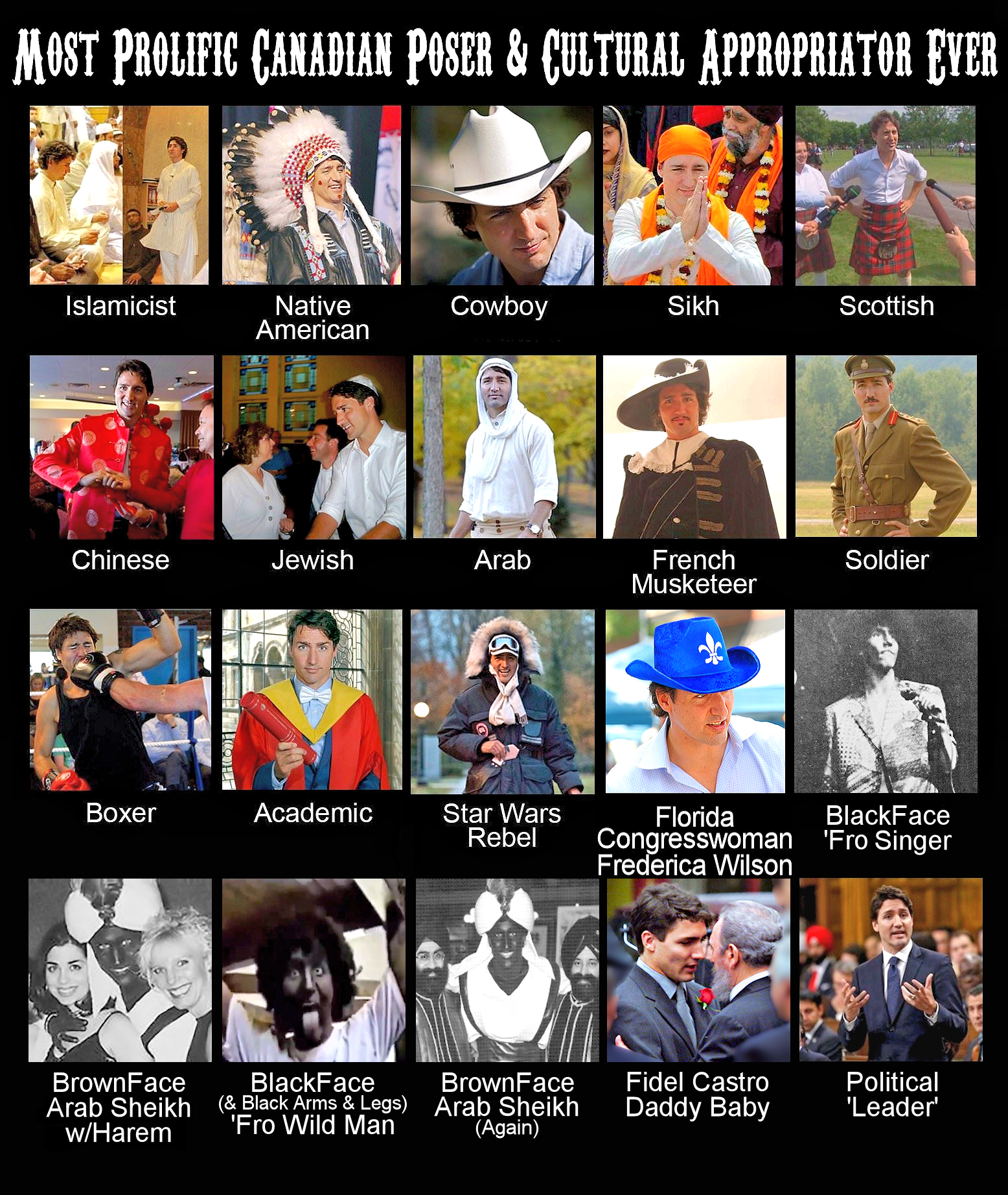 On the night before Canada’s federal election, a photo of Justine Trudeau has been circulated. He is at a costume party in the blackest black face I’ve ever seen. The article at GATEWAY PUNDIT, says it’s a new photo. It isn’t. I’ve seen it many times before in compendiums of Trudeau’s propensity to play dress up in the clothes of whatever country he is visiting. What a pillock…a good British descriptive that fits him like a glove. I hope with all my heart, for Canada’s sake, publishing this produces electoral results. Otherwise we’re probably looking at Australia Mach 2 on our northern border. And that would be disastrous.