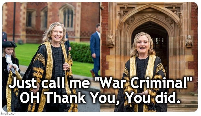 She and Obama went after Khadaffi (for the gold) and turned Libya in to a war torn shit hole. Just like Bush did with Saddam. Eliminate any opposition to Iran.