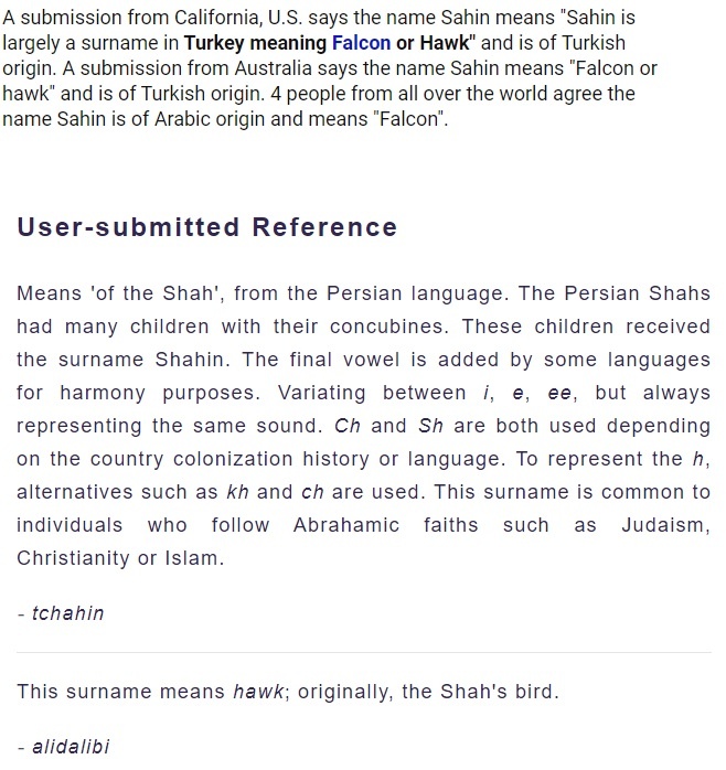 Curiosity regarding the surname identity “Sahin” … <a href=”https://en.wikipedia.org/wiki/%C5%9Eahin”>according to wiki </a>- list of identities with the surname “Sahin” are all from Turkey.