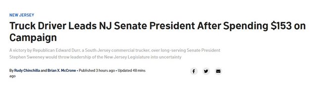 LINK:Truck Driver Leads NJ Senate President After Spending $153 on Campaign – NBC10 Philadelphia (nbcphiladelphia.com)