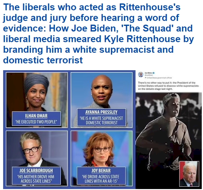 Just think of this for a second. The guy in the most powerful office in the world stated unambiguously that Kyle Rittenhouse, a 17 year old minor, was a white supremacist. This was done without any evidence to support, was done to hurt the 17 year old and was done for personal political gain for the President.