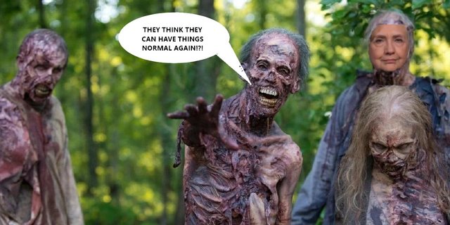 Killary walking behind her future self is also appropriate..