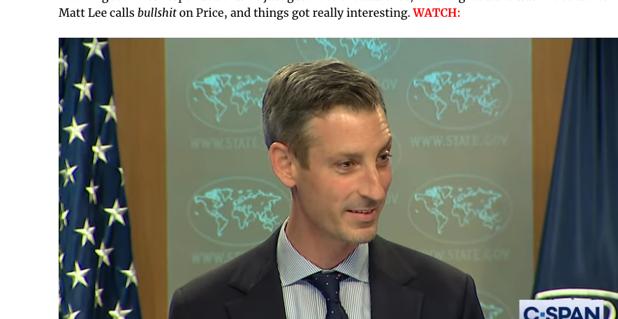 Journalist Matt Lee then asked Ned Price what the declassified evidence was that the state dept was referring to. Price responded that he just gave it to the audience; meaning his word was the evidence. Matt Lee calls bullshit on Price, and things got really interesting. WATCH: