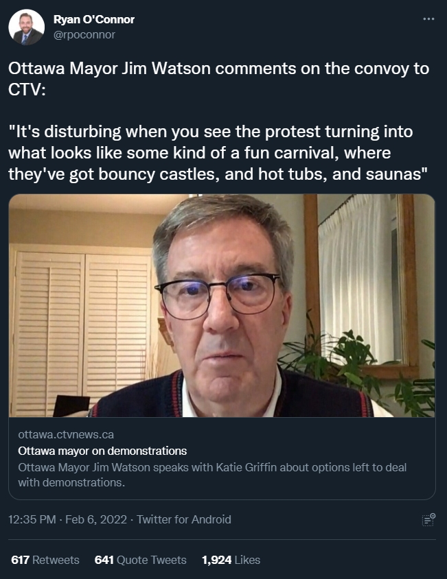 The MSM’s on the ground reports around Ottawa are obediently quiet about the police assault but some are writing their usual pro Trudeau fictions. Rebel news must be having problems of some sort as they’re on site coverage is very spotty and seemingly left to very young inexperienced reporters. I give them full credit for trying to report at least.