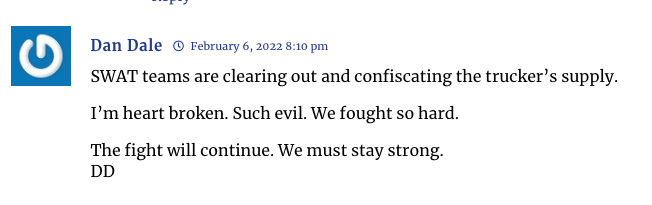 They’re prepared. Pat King just did a livestream earlier today where he said that this had been anticipated and prepared for. He also told people to keep coming down; they can’t give tickets to everyone, and some will get through. He also sent out an order to other trucker groups that were apparently on standby, telling them to head to Ottawa immediately. The zone is going to be flooded, and the police won’t be able to handle it. If Maple Castro calls in the military, it’s game over, but not for the truckers.
