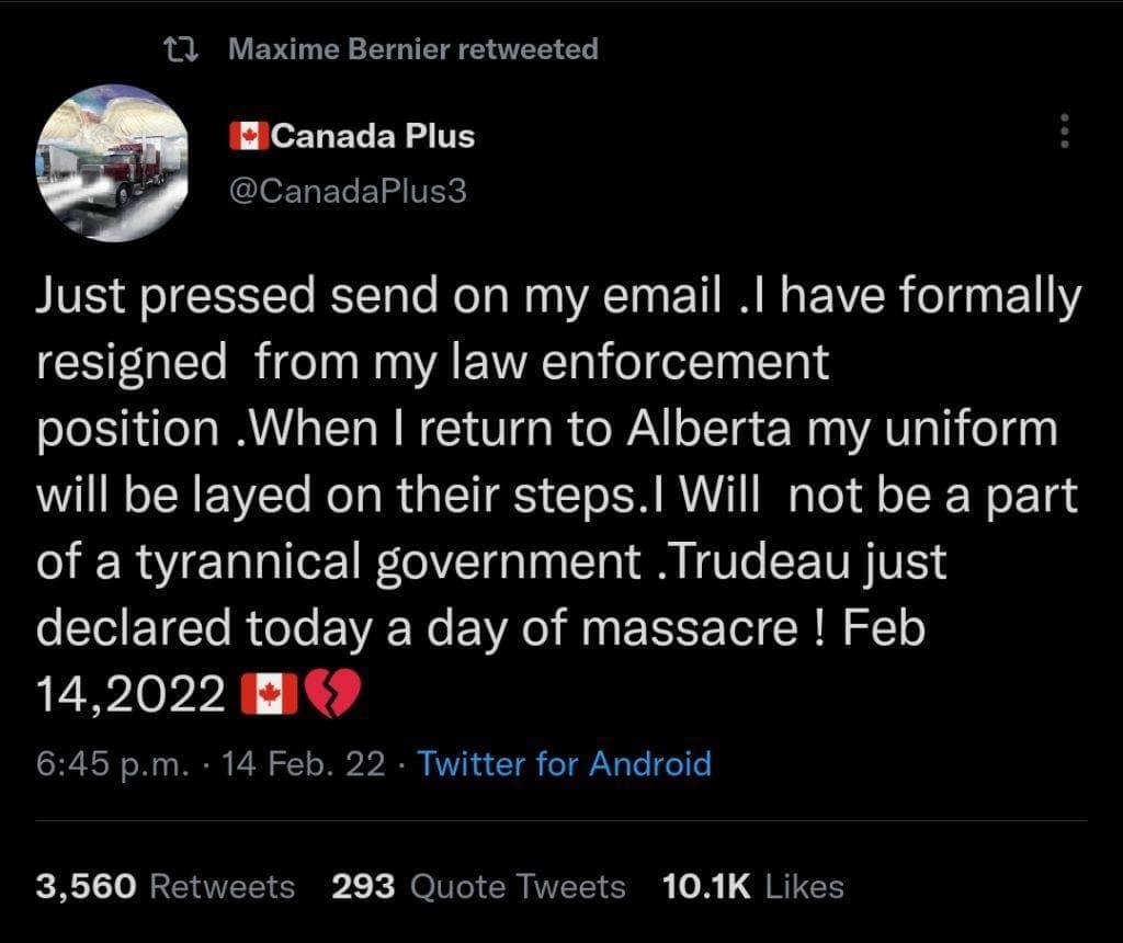 If Canada is allowed to get away with this, it has ramifications worldwide. U.S., New Zealand, Australia, and the list goes on and on. Forget about Russia and Ukraine. This could set off WWIII. Only it wouldn’t be nation against nation. It could be far worse. Citizens against their own governments.