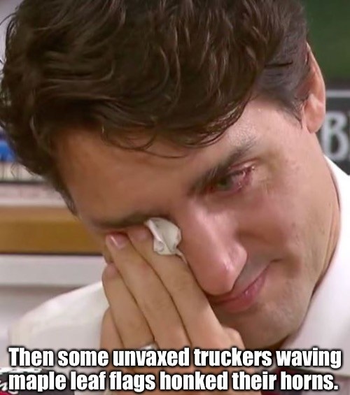 Yes, it is hard. Please know that you are our heroes and an inspiration to us all. But you guys have to stick together. Actually, you are winning, although I realize it doesn’t feel like it. But, you pushed him into going full-on fascist. No more frog in the pot gradualism, he’s cranked the fire up as high as it can go. I don’t know what kind of participation a call to a general strike will get, has that been discussed? But Solidarity in Poland shows that is the next step. The Nazi Trudeau and his henchwoman and actual Nazi-by-birth Christia must be so incredibly unpopular I can’t even imagine how they are polling.