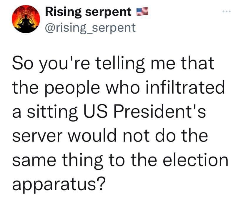 What’s so hard about having every precinct and collection center be staffed with reps from all interested parties to observe counting and handling? That’s your security right there. Every precinct, every step of the way. Check, counter-check, counter-counter-check. It all checks out, and it’s auditable if ever challenged.