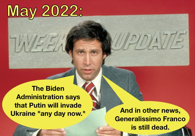 Everything about the Russia invasion of Ukraine has to be increasingly imminent, horrible and loomingly catastrophic for the planet, so that when it doesn’t happen the glorious victory for Dear Leader Biden can be proclaimed and amplified from the mountaintops.