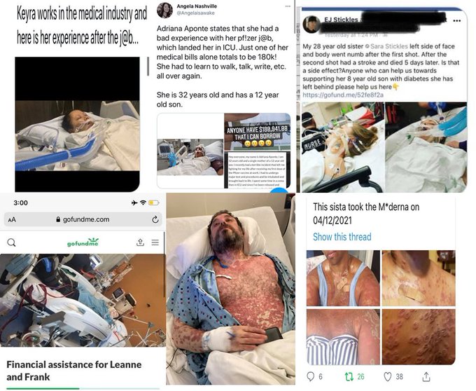Pictures are from a FB site, that was shut down really quickly. I snagged a few, but there were thousands upon thousands of people on it. Many of them, themselves had lost their FB accounts for reporting their personal stories of COVID vaccine adverse effects. Sadly hundreds of them had even maxed out their medical & were thousands in debt due to their adverse reactions to the COVID vaccine.