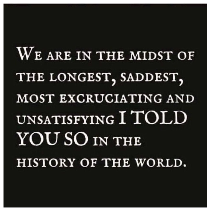 Through all the BS I am maddened due to the fact because of this fraud I was not able to see my 93 year old Father before he passed last year…due to natural causes…not fake Covid but the retirement home sequestered everyone in and would not allow visitors. As such our weekly visits amounted to a year visit and as such I was not able to spend the time to comfort him that we were used to and let him know that I was there for him.
