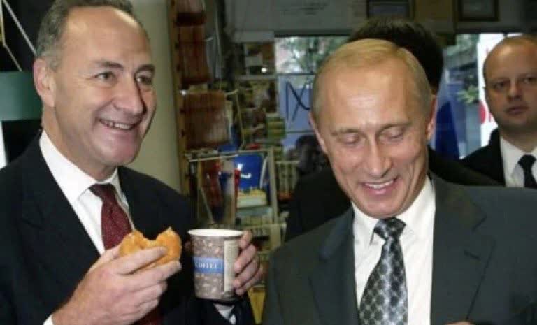U.S. Senator Chuck Schumer (D, NY) celebrating the opening of the first Lukoil station in his state with Russian President Vladimir Putin in 2003.