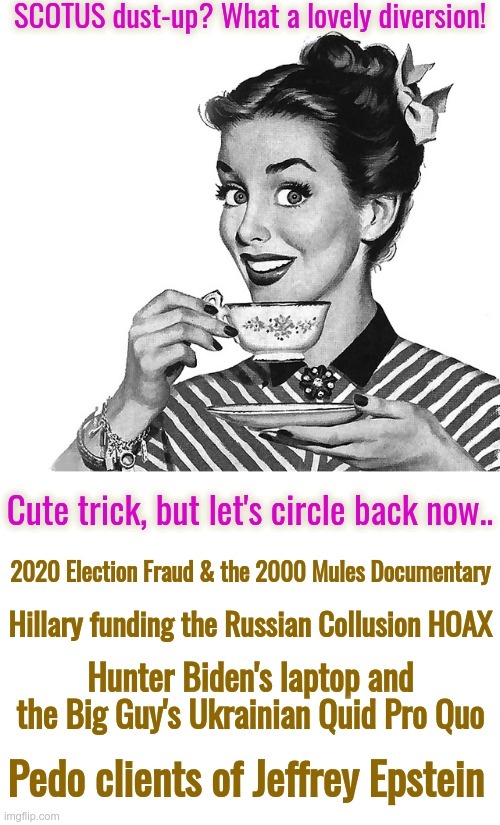 That leaves actual interference with the operation of the Court as the likely motive. Here there are no competing possibilities, and if indeed that was the motivation for this action it is grave indeed. Such an act would go massively beyond the impact and intent of January 6th. To attempt to corrupt one of the co-equal branches of the government is a serious matter, and now we shall get to see whether or not there really is any pretense of our Constitution, DOJ and other mechanisms to protect its integrity that remains or whether, in point of fact, the United States is a failed nation and the Constitution is, in fact, toilet paper.