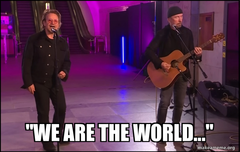 After writing pro-Ukraine poems for Nancy Pelosi to read to congress, now Bono travels to Ukraine. I said on March 1st when Bono shows up, that’s the moment when you know western propaganda over Ukraine will soon apex. Bono’s appearance in any State Dept/CIA construct usually precedes the bombing of the proverbial milk factories and subsequent “babies are casualties of war” narrative. Well, today: