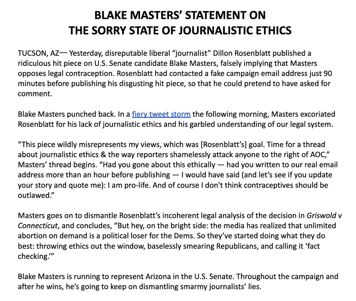 This is an absolutely ridiculous lie. Blake said no such thing. He said Griswold was wrongly decided (which it was) and cases that are wrongly decided can set precedents that lead to worse decisions in the future.