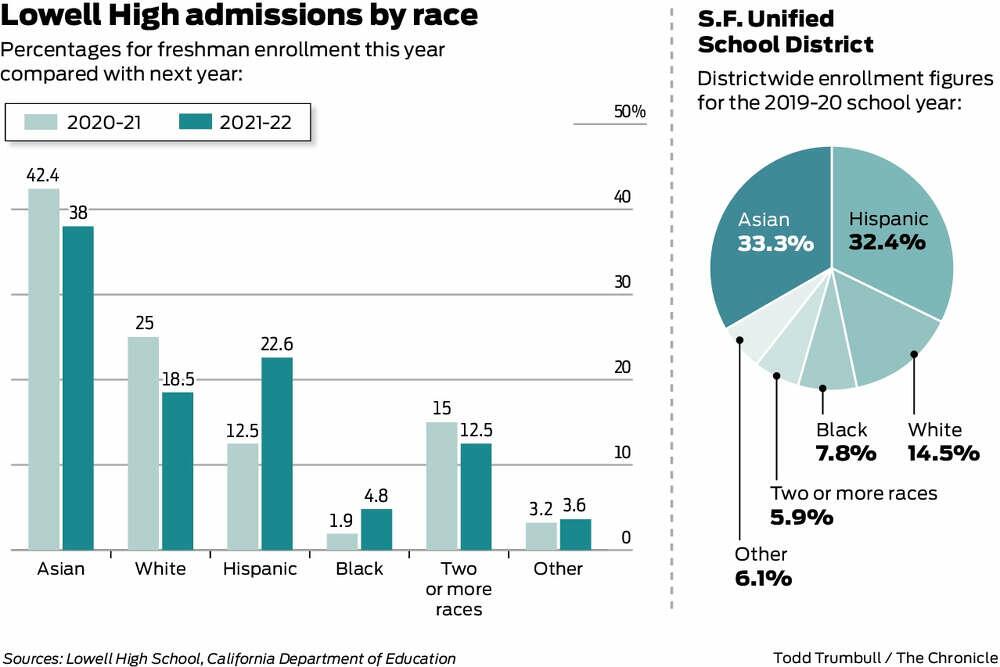 Of the 620 freshman students at Lowell, 24.4% received at least one D or F during the fall semester, which compared with just 7.9% of first-year students in fall 2020 and 7.7% in fall 2019, according to internal SF Unified School District figures obtained by the San Francisco Chronicle. Overall, the number of 9th graders at Lowell with a D or F tripled from 51 in 2020 to 152 in 2021 – bringing the figures closer to those at other high schools in the city.