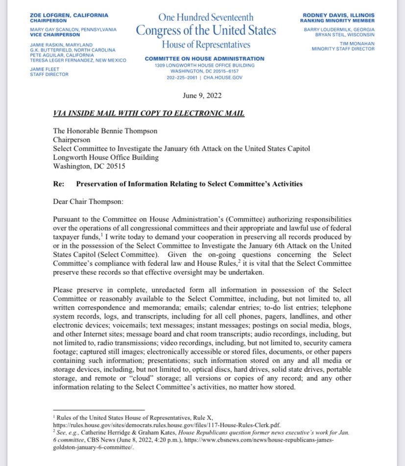 What a joke. They have no idea what’s there in the first place since the repubs weren’t allowed to chose their reps to be on the committee. Nan chose them. But keep those cards and letters coming you Congress critters. They just mean so much. Gag.